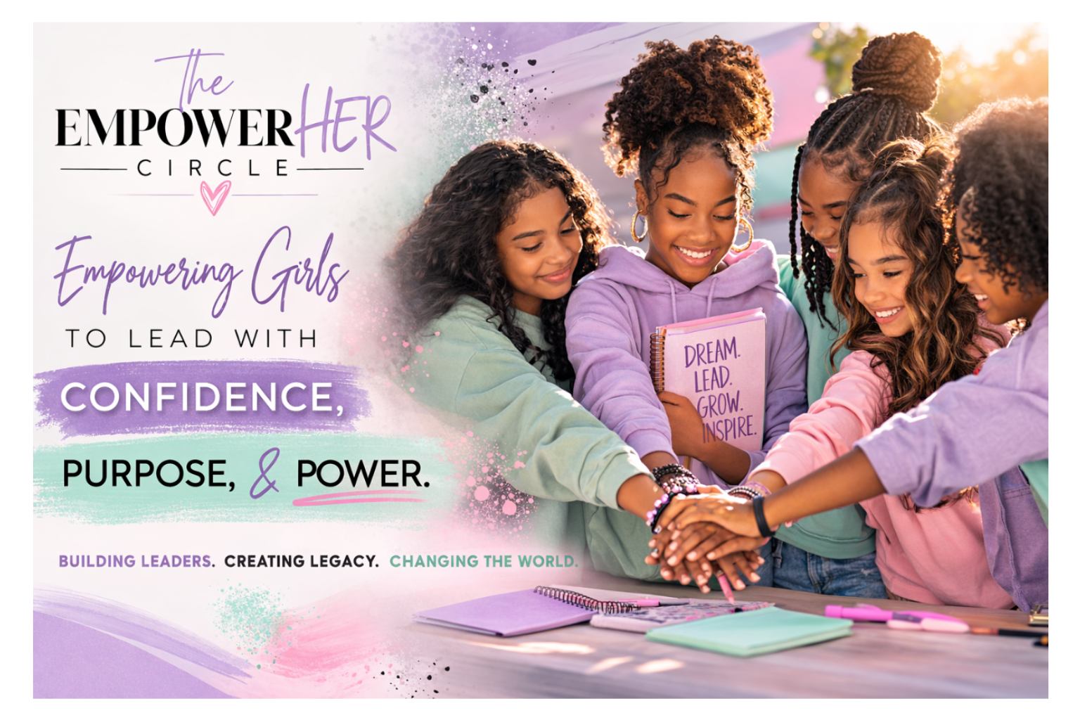 The EmpowerHer Circle empowers girls ages 10–19 to build confidence, leadership, and self-expression through mentorship, sisterhood, and creative learning.